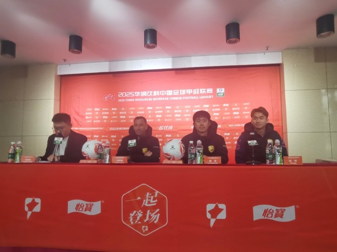 4月4日下午,2025赛季中甲联赛第3轮,大连鲲城客场对阵青岛红狮的赛前发布会举行,大连鲲城主教练奥斯卡携队员雷文杰出席。