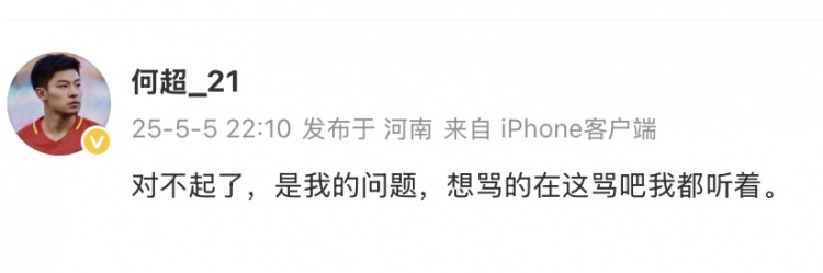 这粒失球令河南队球迷非常不满,何超赛后也在微博中进行道歉。