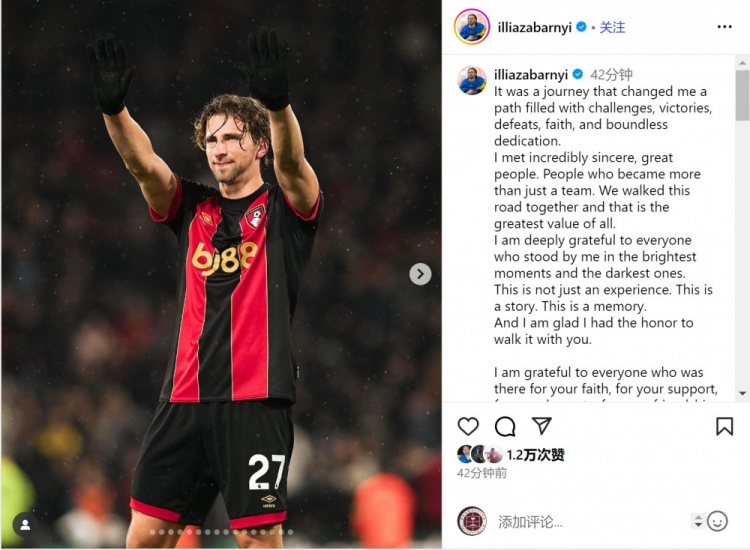 尽管这一章已经结束,但我对伯恩茅斯足球俱乐部大家庭的祝福依然无尽,愿你们在所追求的一切中都能取得成功。愿你们心中充满爱,脑中思想清晰,眼中燃烧火焰❤️。”