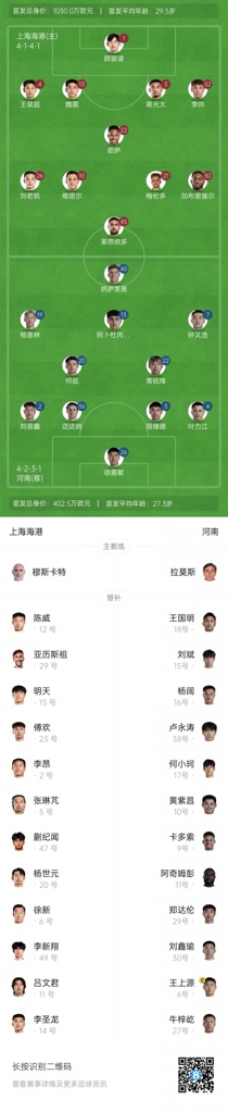 目前,上海海港13胜5平2负积44分位列中超第2,仅落后榜首的申花1分;河南队5胜4平11负积19分位列中超第12。