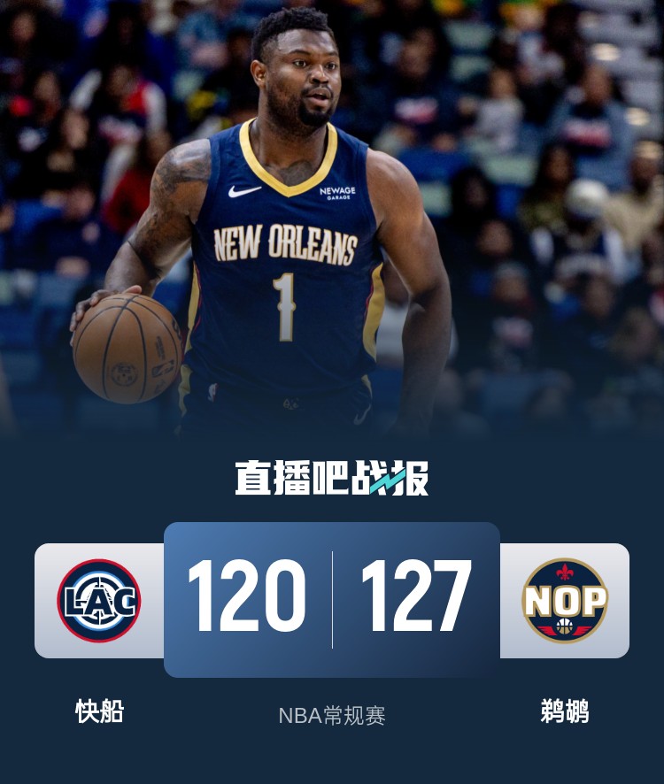锡安22+10+12 哈登25+17 莱昂纳德29+8 鹈鹕拒逆转力克快船