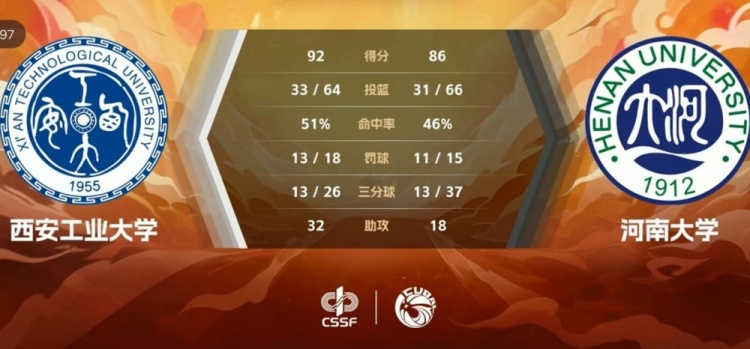 末节决战,西安工大也是突然陷入得分荒,半节仅得3分,刘思雅里突外投加造杀伤,同时串联球队,带队打出18-5攻击波直接追到个位数分差。曲乾铭和胡烨娜接连突破取分止住颓势,刘思雅和郑梓含继续三分追分,无奈时间所剩无几,最终西安工大拒绝逆转,92-86力克河南大学夺得季军。