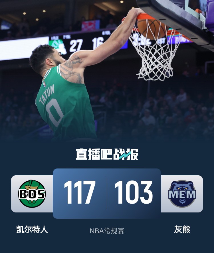 塔图姆25+14 霍福德26+9 莫兰特26+6 绿军轻取灰熊豪取9连胜