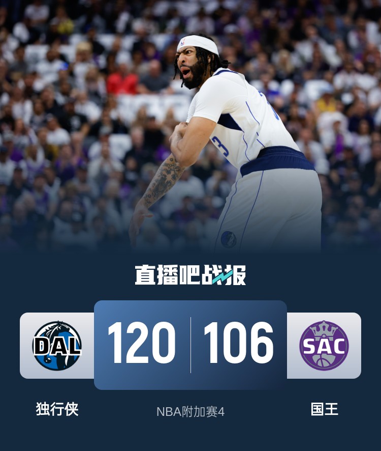 4月17日讯 NBA附加赛,西部第9的国王主场迎战西部第10的独行侠。本场比赛,胜者与灰熊争夺最后一张季后赛门票,败者被直接淘汰。本赛季常规赛双方交手3次,国王全部获胜。