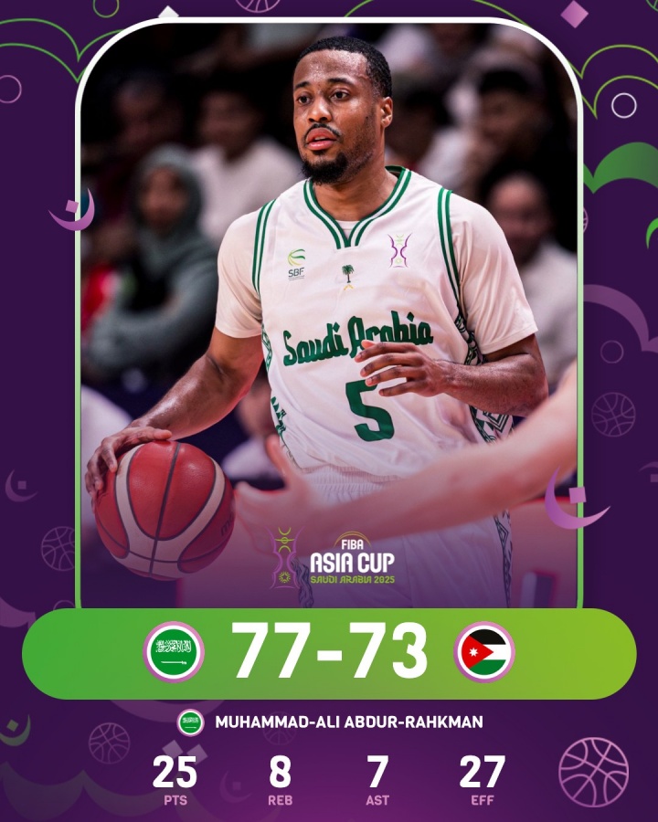 沙特归化球员拉赫曼出战37分21秒,20投8中,三分11中3,罚球7中6,得到25分8篮板7助攻2抢断,沙特2米08中锋阿尔苏韦莱姆出战30分17秒,11投5中,罚球4中4,砍下14分15篮板1助攻6盖帽。沙特男篮上次在亚洲杯赢球已是2013年(13-14名排位赛)。