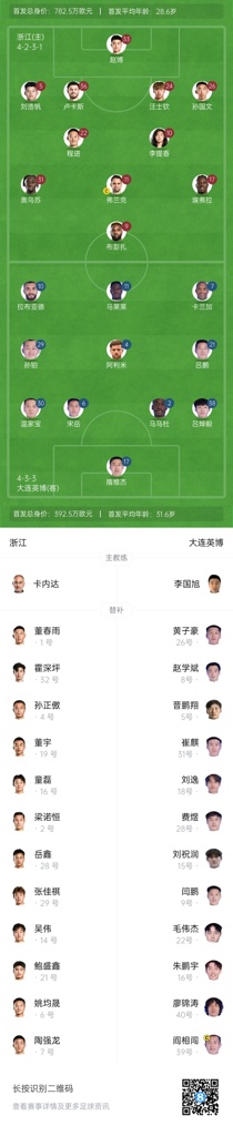 02月23日讯 2025赛季中超第一轮,浙江vs升班马大连英博首发出炉,国青毛伟杰、朱鹏宇火速回归进入替补席。
