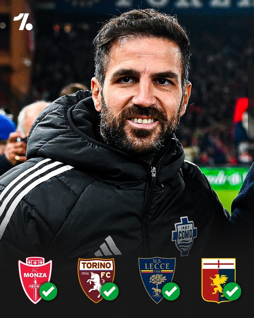 去年夏天,考取到欧足联职业教练证书的法布雷加斯正式出任科莫主教练,这也可以被视为他执教生涯的首个正式赛季。本赛季至今他带队34轮11胜9平14负,位居意甲第11位。近四轮联赛,科莫先后战胜蒙扎、都灵、莱切以及热那亚,豪取四连胜一口气宣告保级。