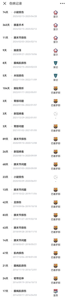 据统计,乌姆蒂蒂生涯因伤缺阵天数累计已经超过了3年,他可能很难再穿上球衣征战绿茵场。