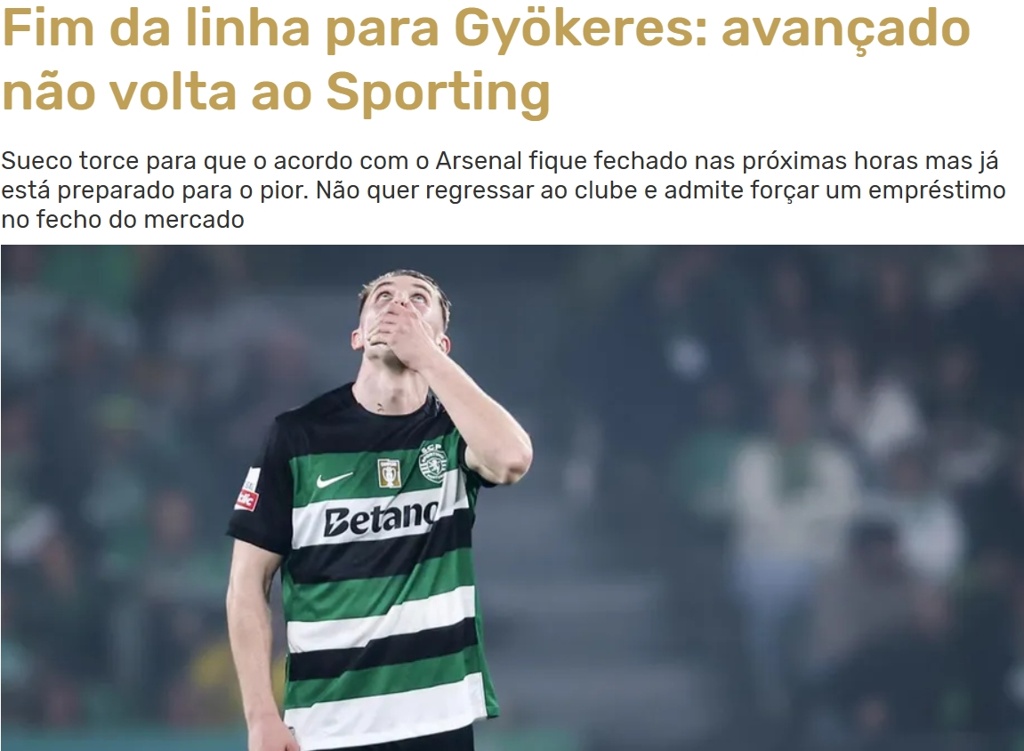 葡媒:约克雷斯已决定,无论是否转会阿森纳,都不会再为葡体效力